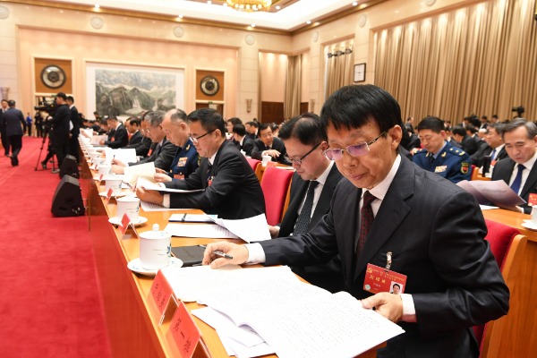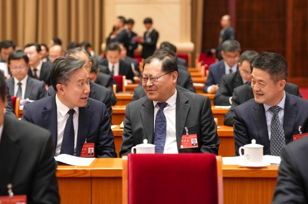 二十届中央纪委三次全会举行第二次大会,图为与会人员在会前交流学习习近平总书记重要讲话精神体会。胡思远 摄