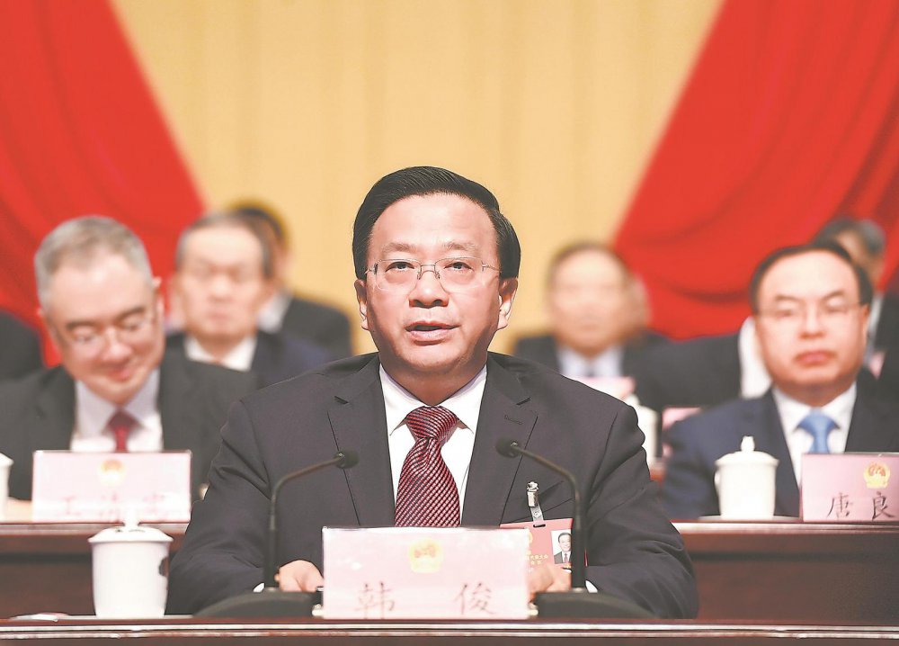 韩俊当选省人大常委会主任并发表讲话 张韵声当选省人大常委会副主任 通过关于政府工作报告等六项报告的决议